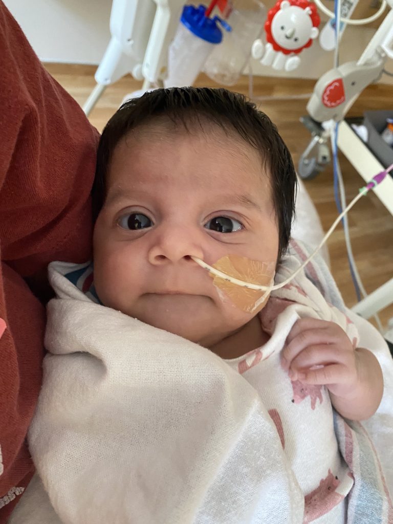 “The first couple of weeks were really hard because when we went up to go see her, she was intubated and sedated and had tubes and all sorts of things on her,” remembers Karina. “I was glad that she was alive because they told me this is a very serious condition and my biggest fear was that she wouldn’t even make it after birth, but she did and she was good … and I was so grateful!”